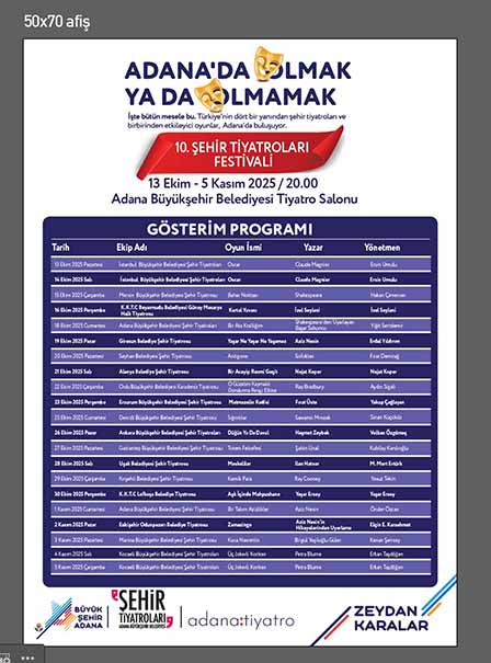 Adana Büyükşehir Belediyesi Şehir Tiyatrolarının Düzenlediği; ‘10. Şehir Tiyatroları Festivali’ Başlıyor