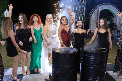 Düğünle aynı gece gerçekleştirilen kına töreni, duygusal anların yaşandığı kadar neşeli dakikalara da ev sahipliği yaptı. Geleneksel kına seremonisi sırasında Damla Erdoğan’ın gözyaşlarını tutamadığı anlar, davetlileri de duygulandırdı. Ardından müzik ve dansla devam eden kutlamada, eğlence adeta doruk noktasına ulaştı.