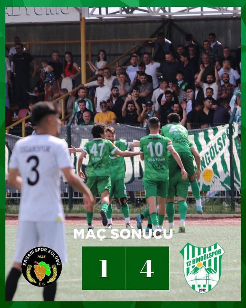 | 12Bingölspor, Ergani deplasmanından 4-1 galip ayrılarak haftayı üç puanla kapadı. | ||