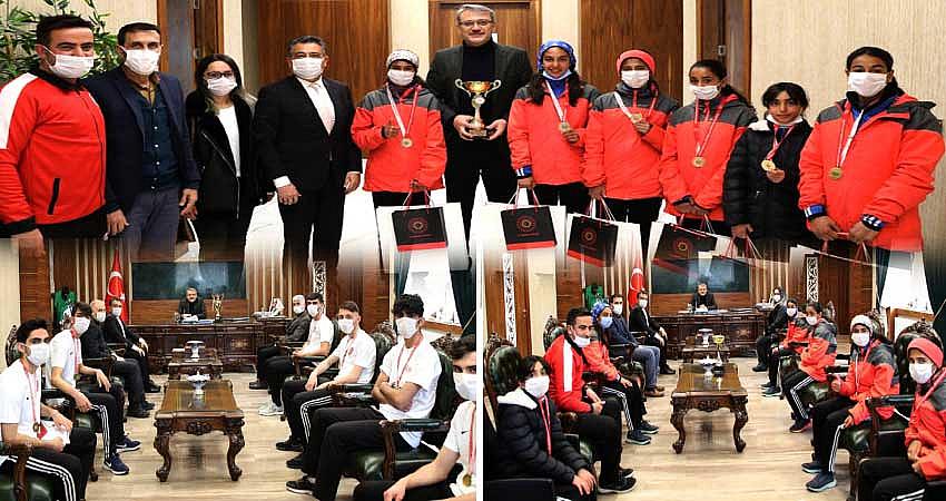 VALİ EKİNCİ, ŞAMPİYON ÖĞRENCİLERİ AĞIRLADI